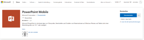 Disponible sur le Microsoft Store, PowerPoint Mobile a été pensé pour les tablettes et appareils mobiles, mais fonctionne aussi sur n’importe quel PC ou ordinateur portable. Le téléchargement est gratuit.
